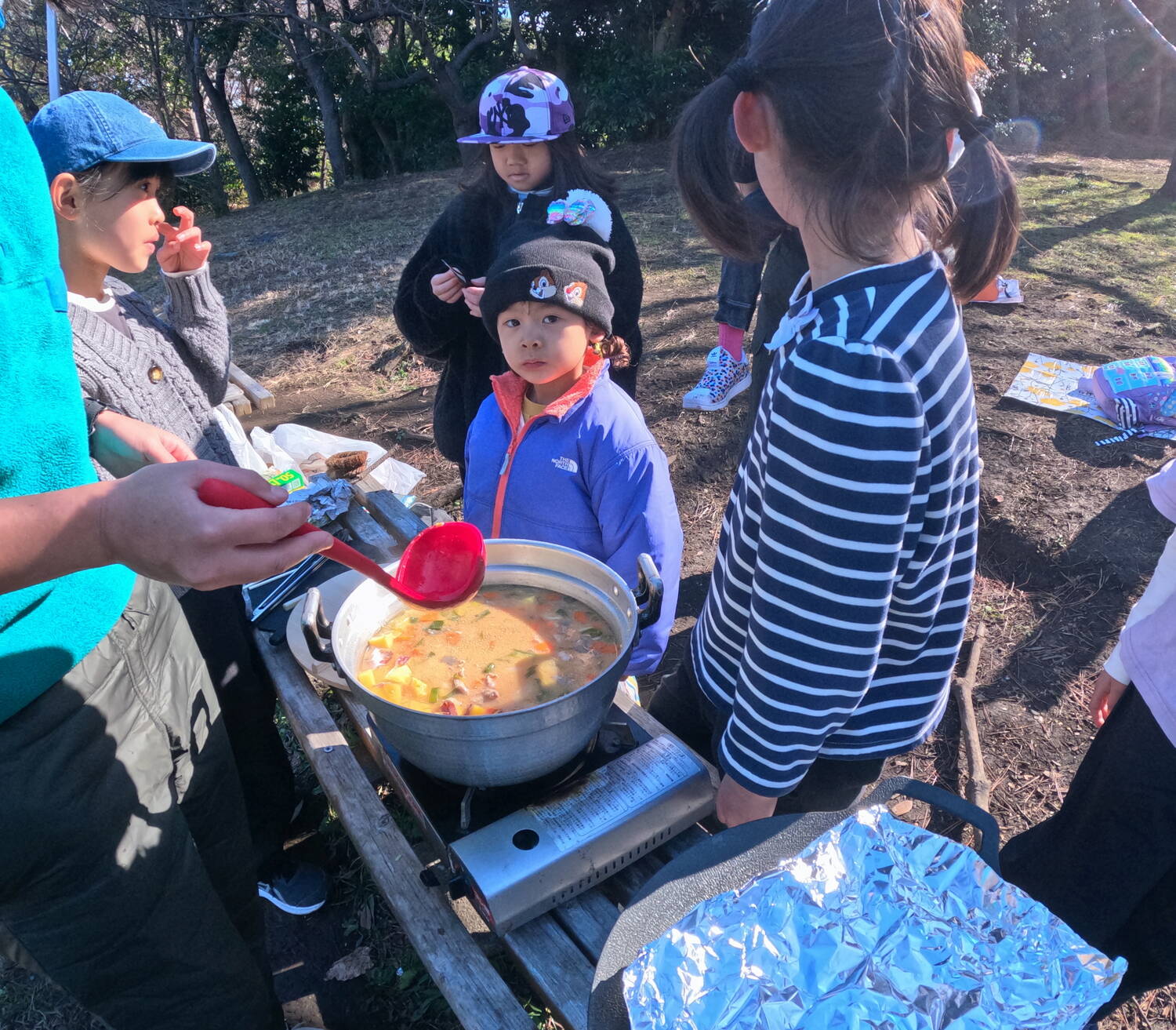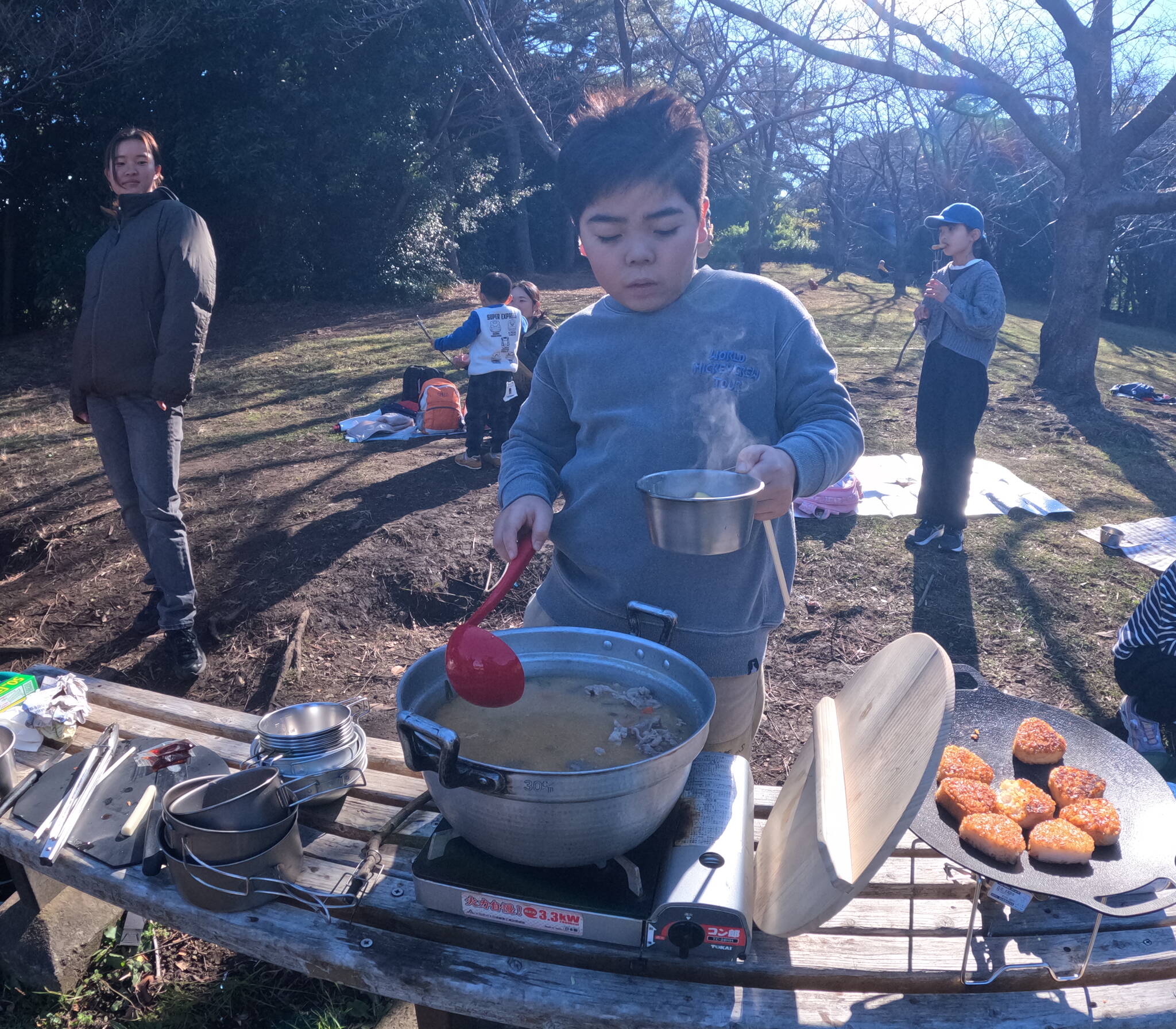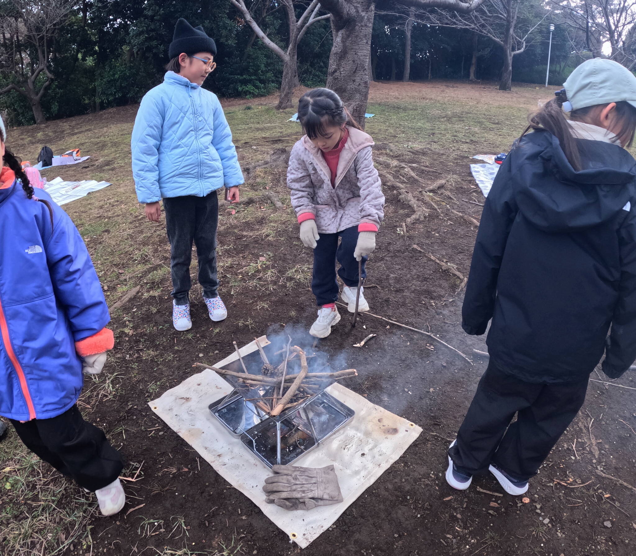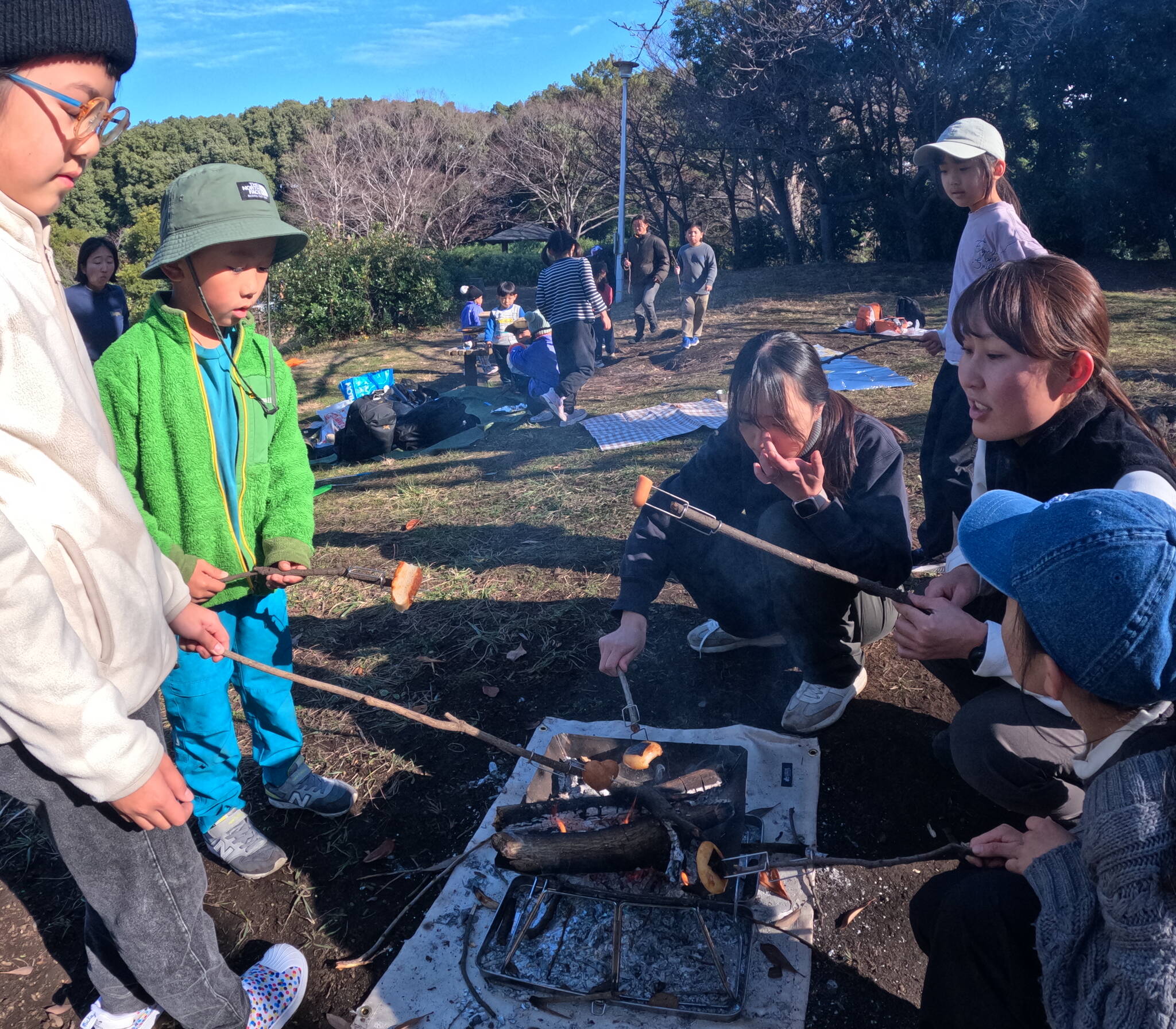 火が点いて、まだお昼ご飯までは時間があったので子ども達は思い思いにやりたい遊びをリーダーを誘って遊んでいきます。