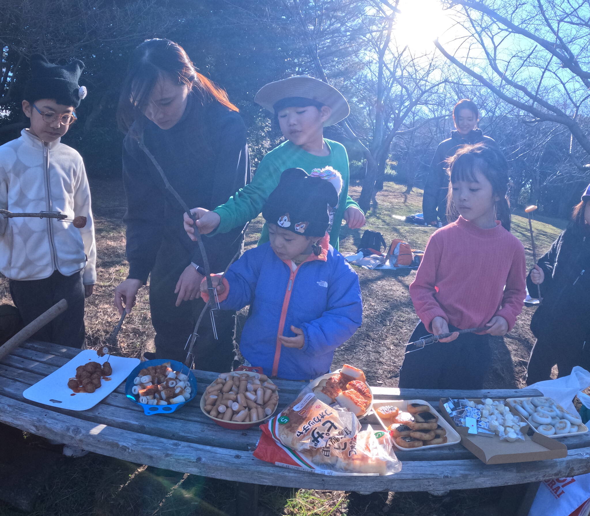 チーズ竹輪、磯部餅、餃子饅頭、ソーセージ、チーズ、ピザパン、ミートボールなど自分の好きな具材をフォークにさして、炙っていきましょう!