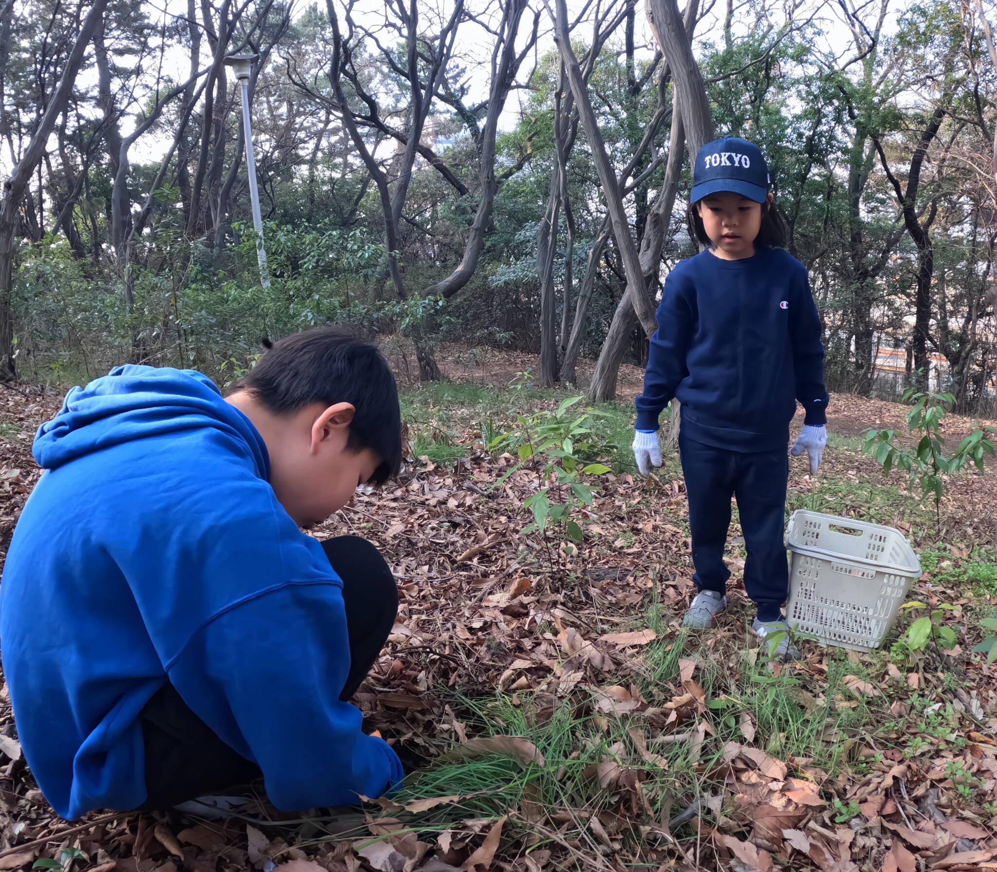 籠を片手に枝拾いと思いきや入っているのは、大量のノビル(笑)