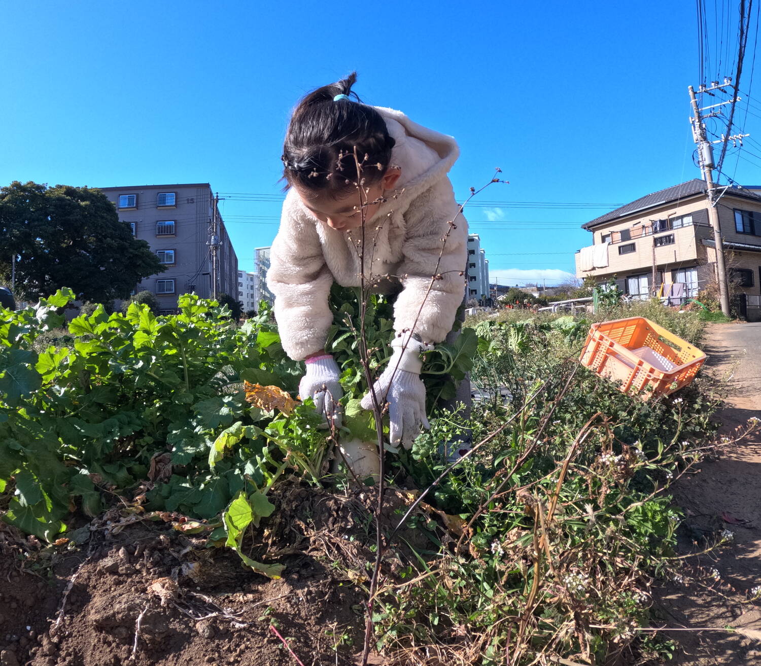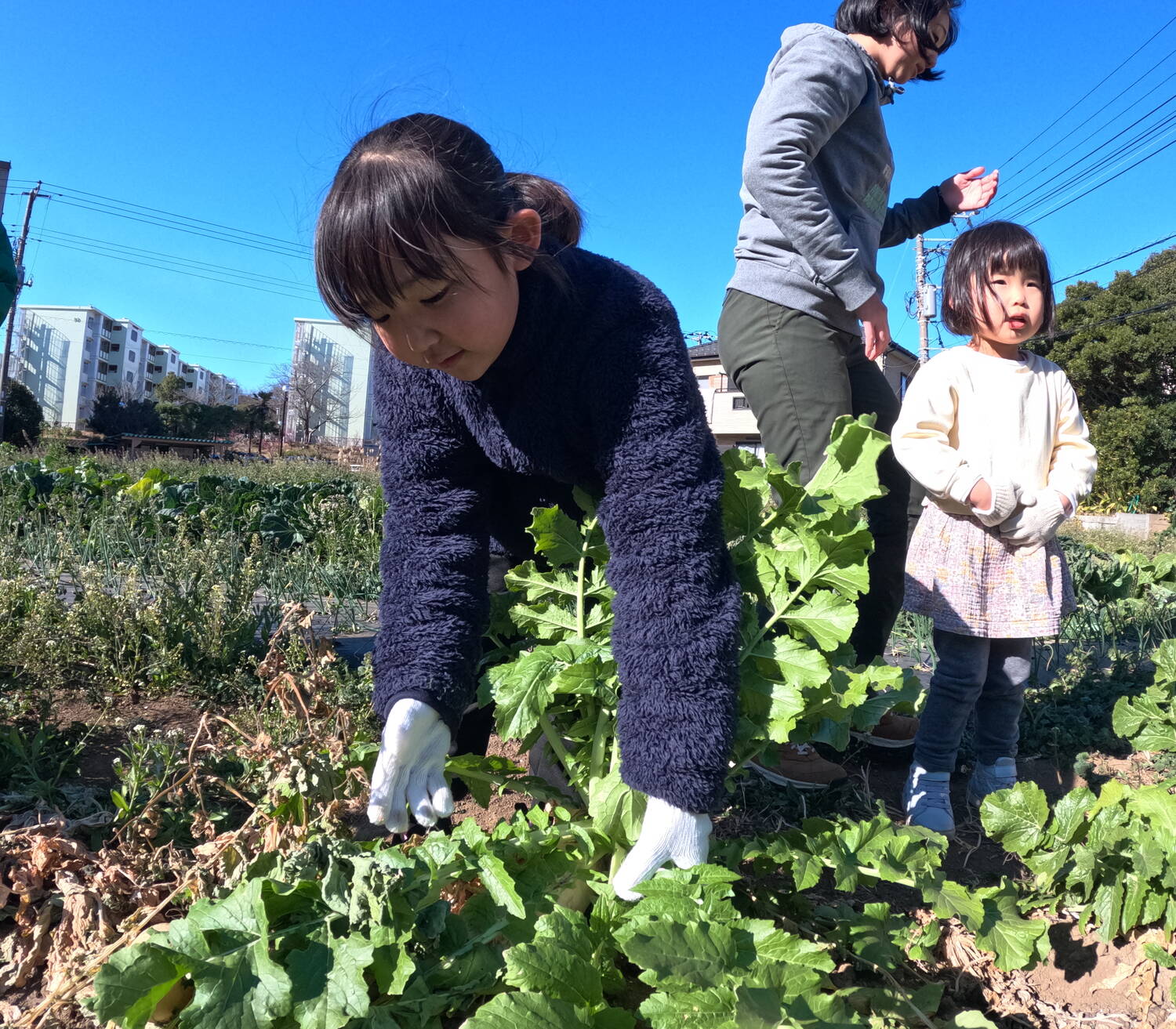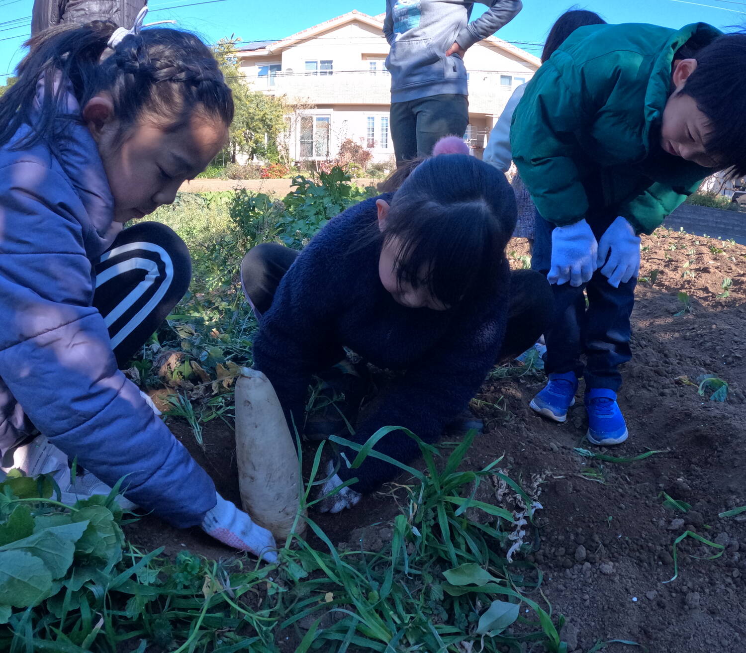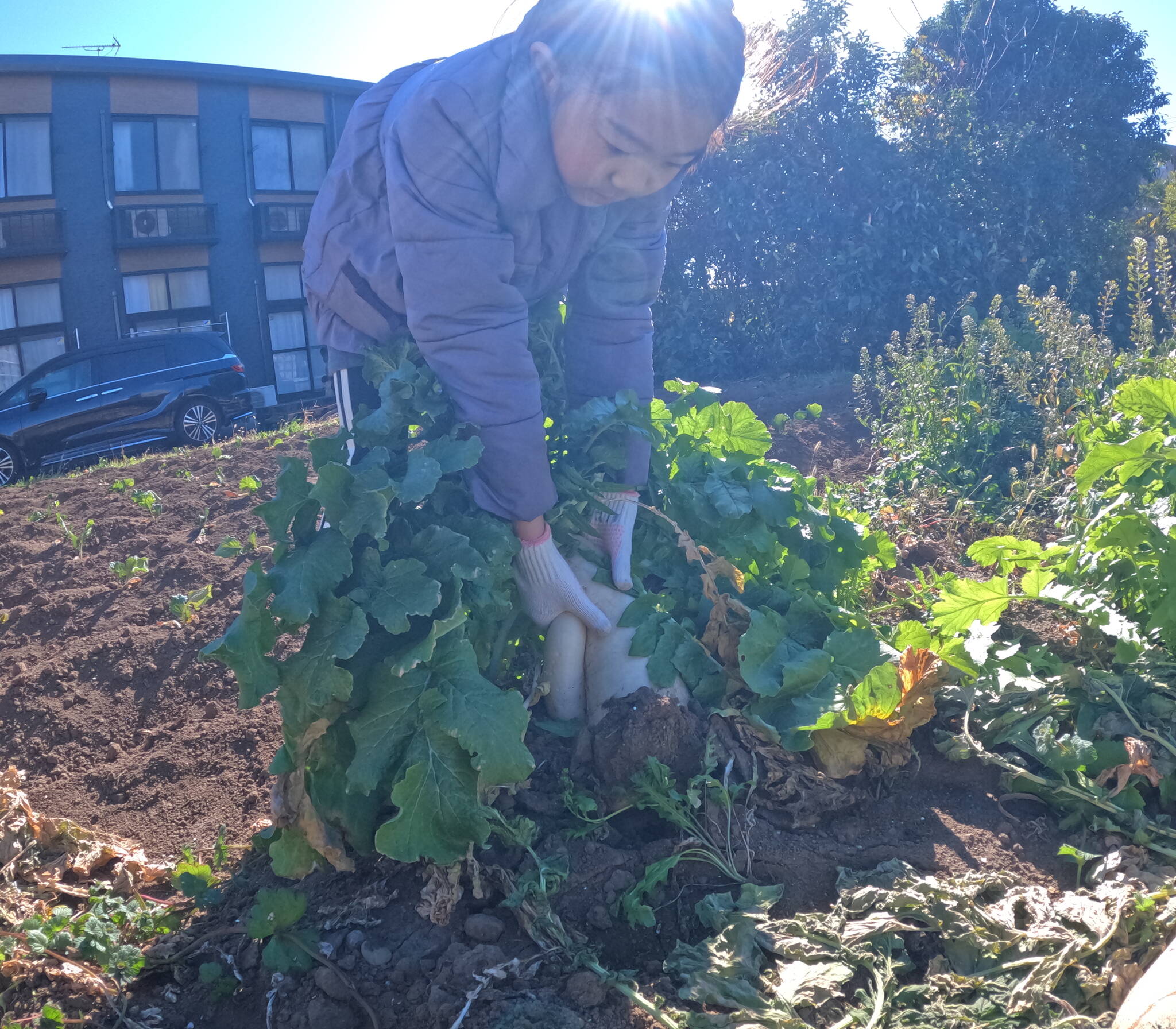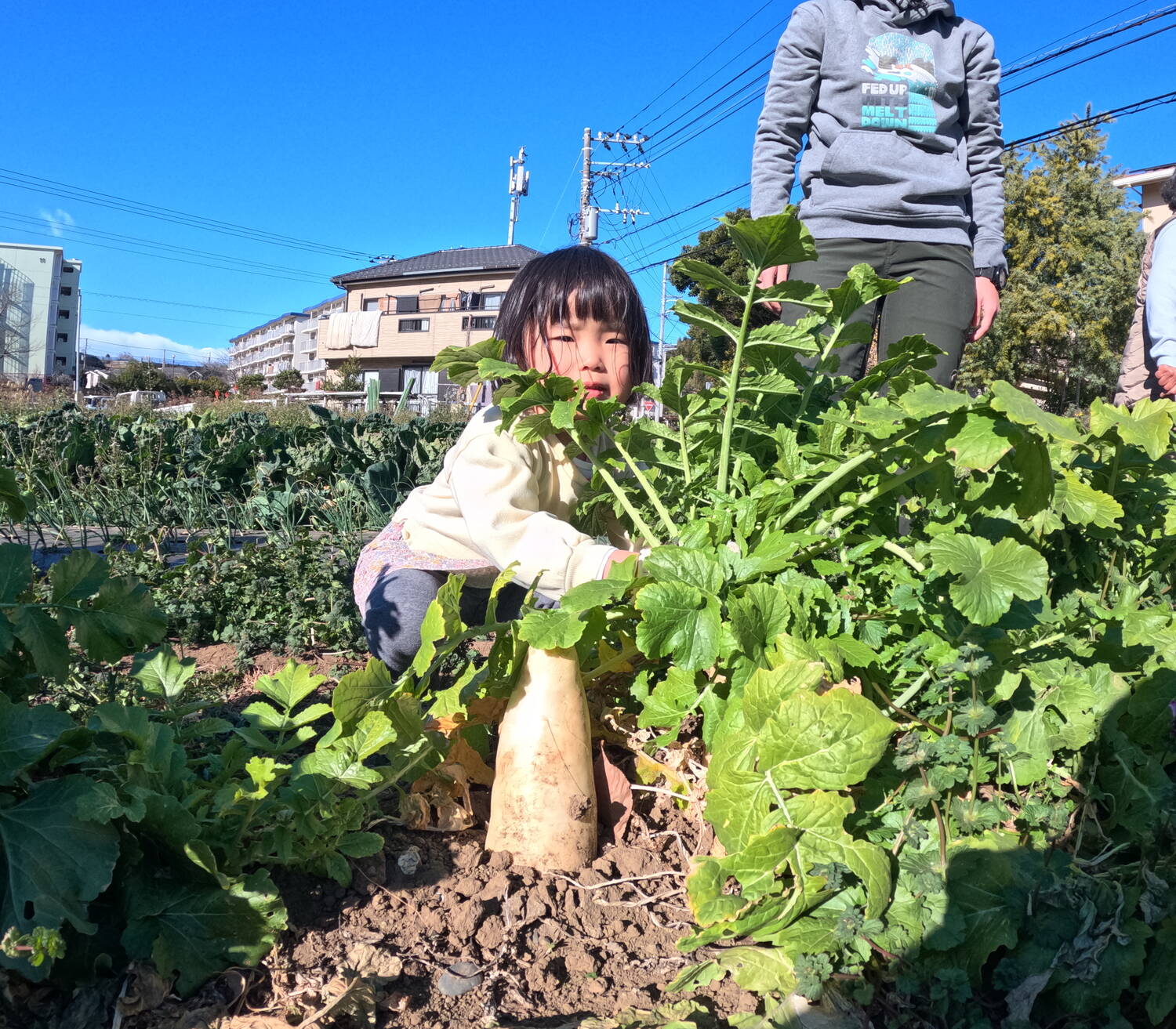 自分で大根を選び、折れないように注意をしなが真っすぐひきぬきます。