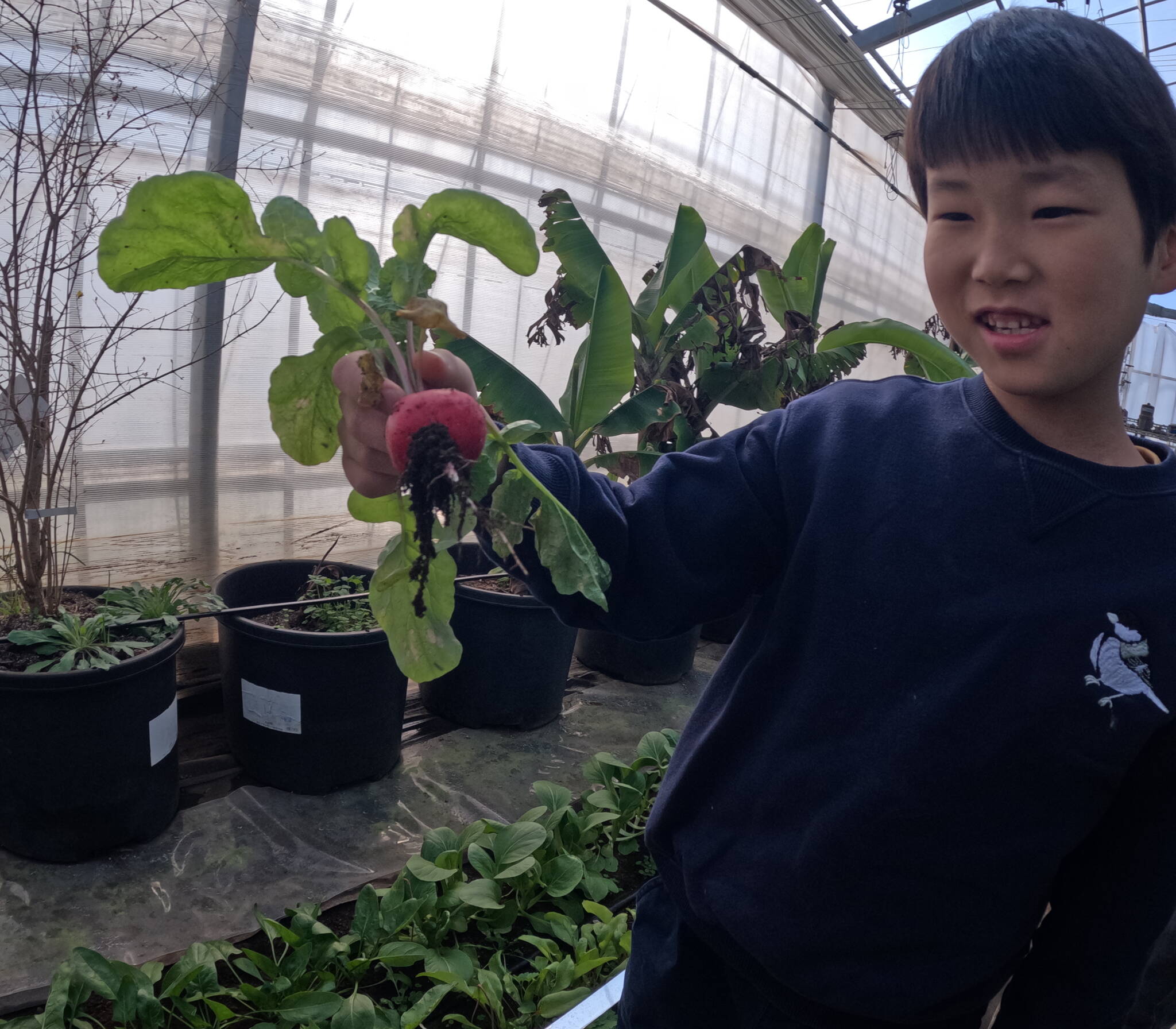 最後にお昼のシチュー用に、ラディッシュの収穫も!
