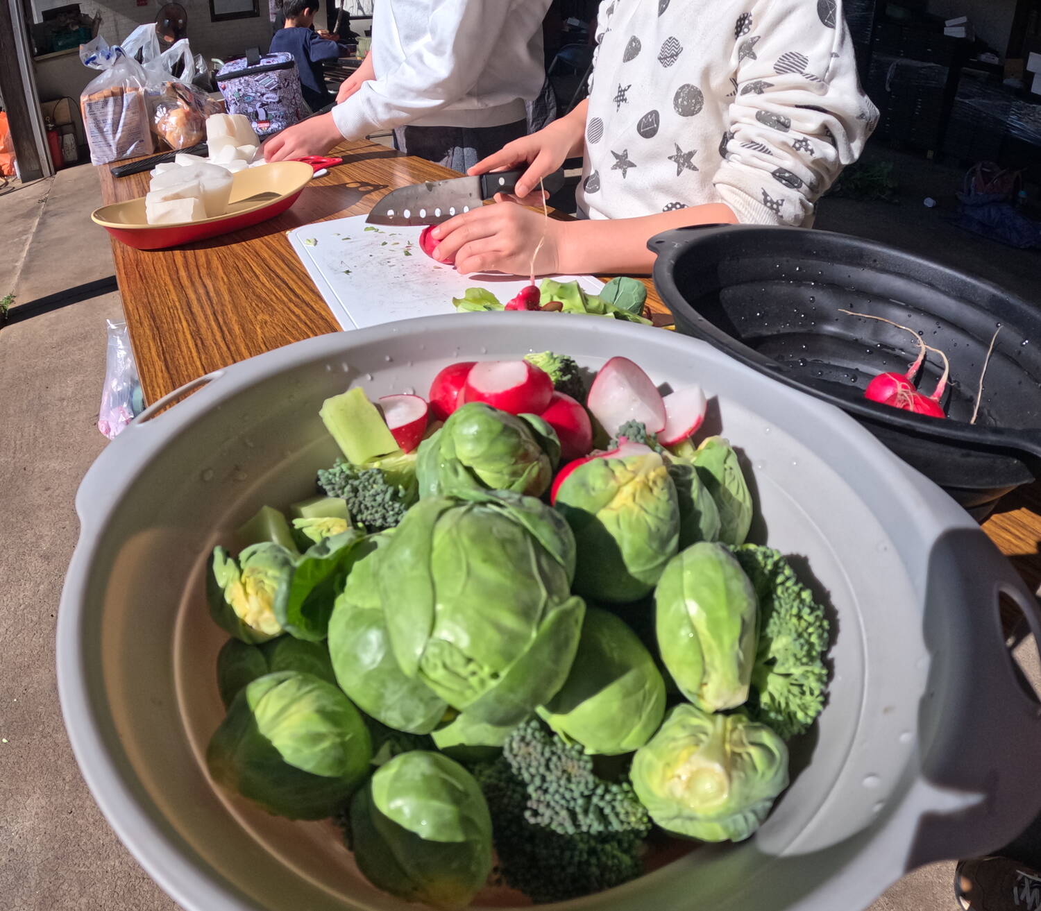 農園で収穫をした、三浦大根・芽キャベツ・ラディッシュ・ブロッコリー・カリフラワーを切っていきましょう。