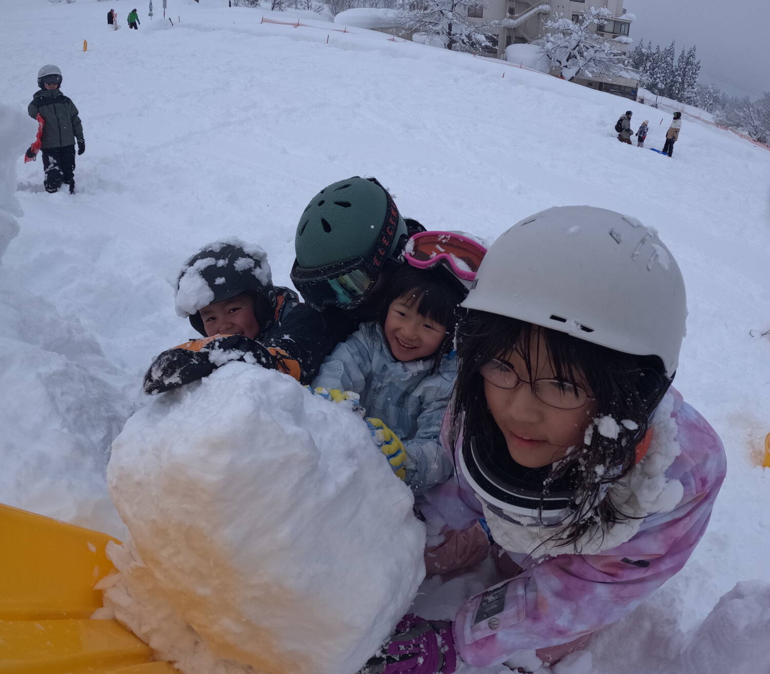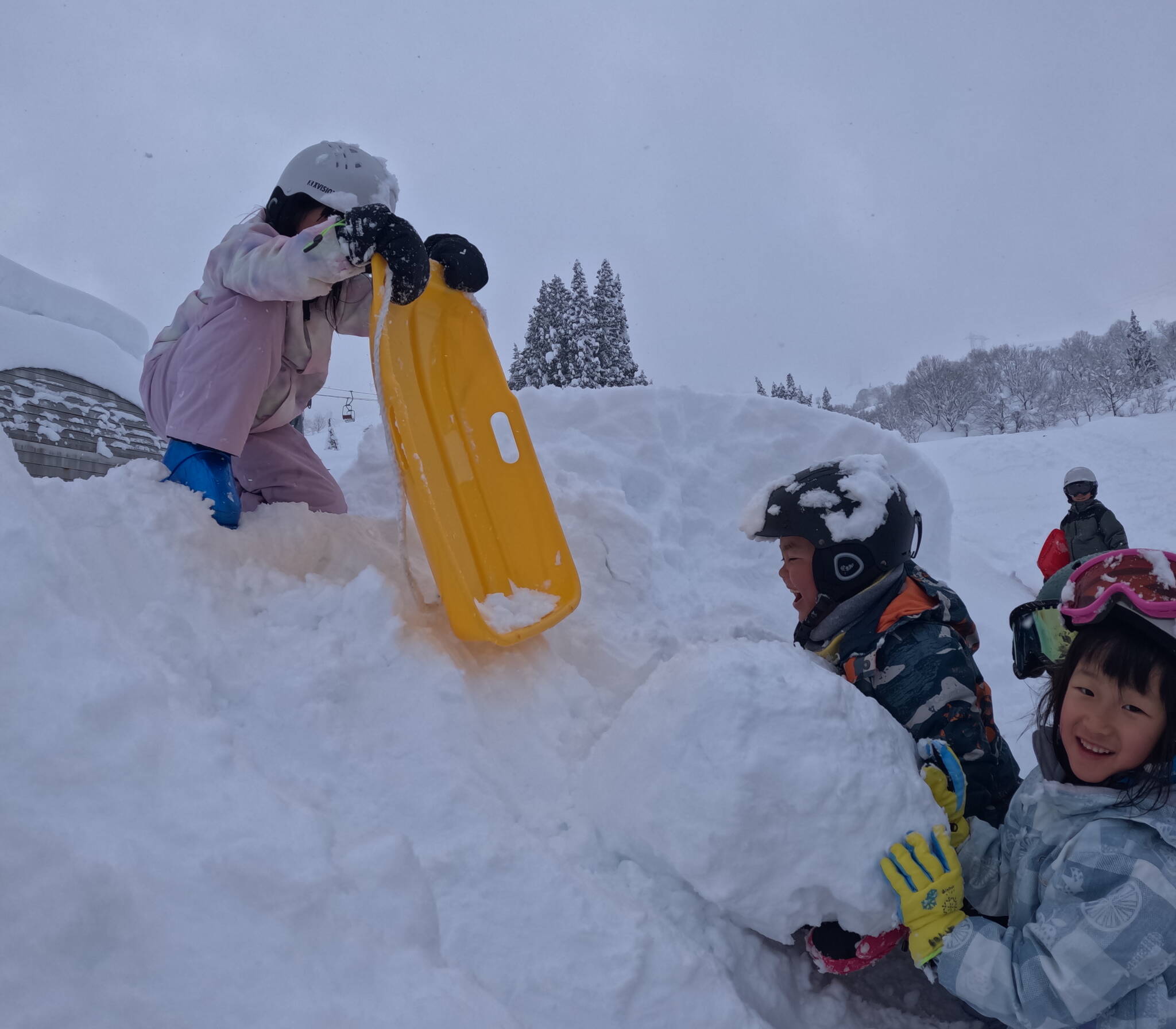 最後は、ソリをしたり、ゲレンデの除雪された雪で作った巨大な山を登ったり時間ギリギリまで雪と遊びました!