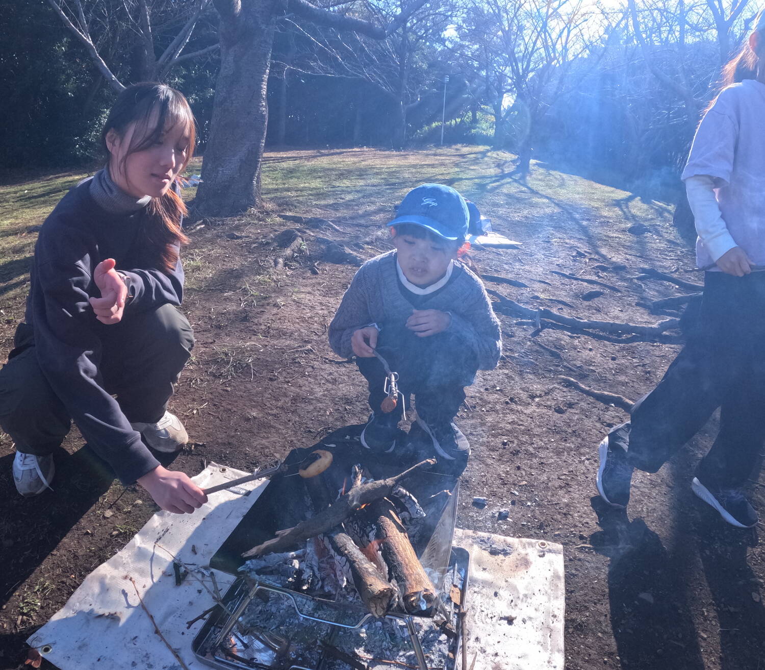 火が点いて、まだお昼ご飯までは時間があったので子ども達は思い思いにやりたい遊びをリーダーを誘って遊んでいきます。
