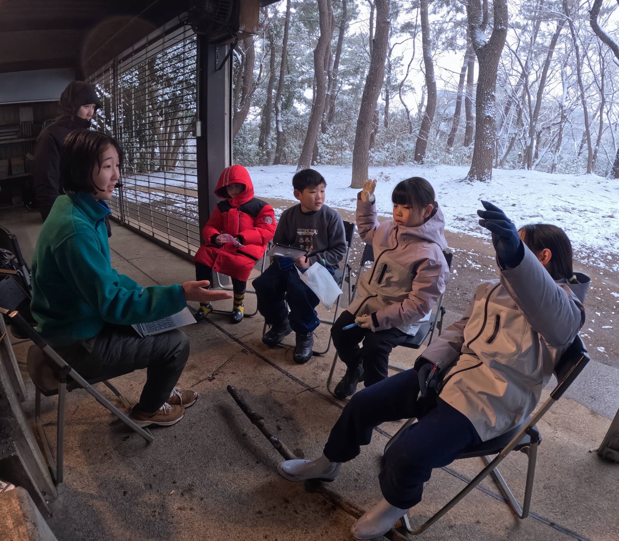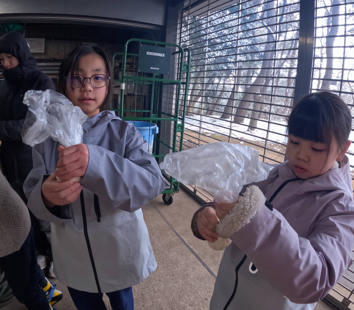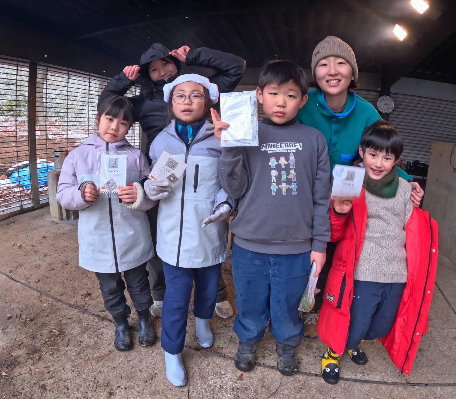 品川駅に集まった子どもたちは、珍しい天気なこともあってか寒さをよそに元気そう。