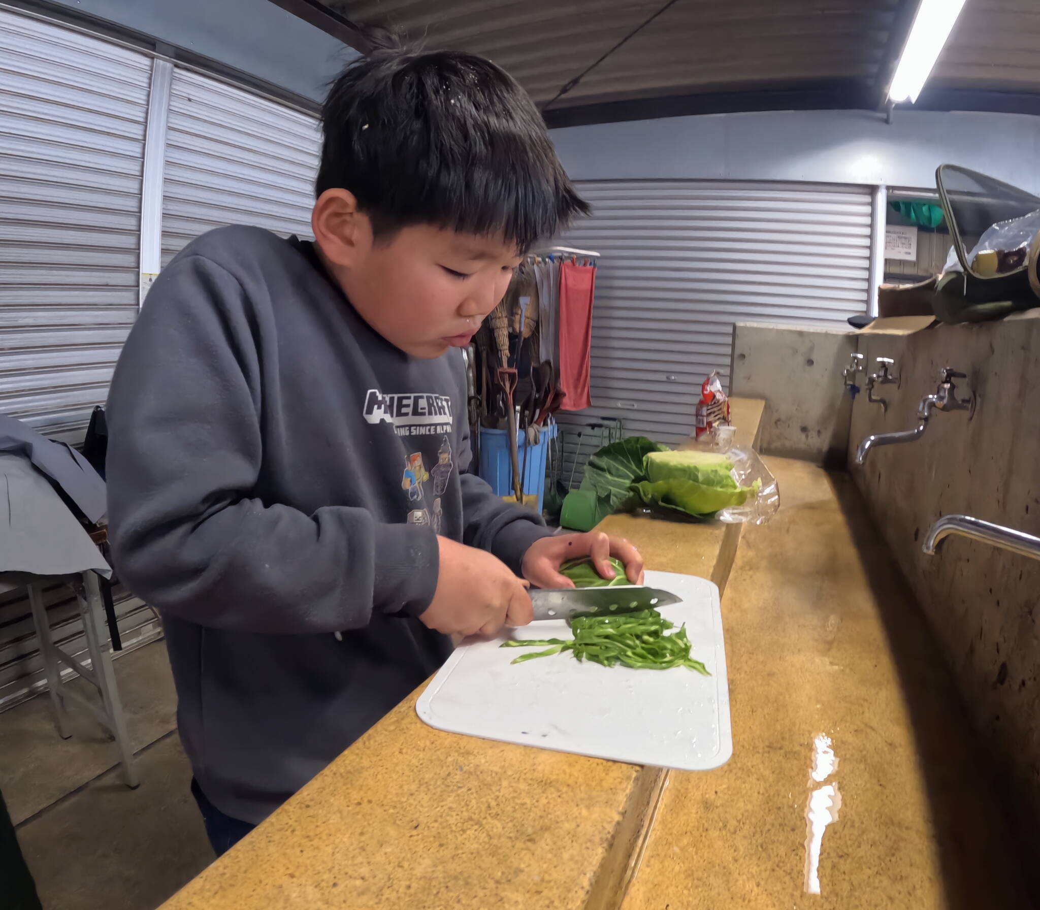 つづいては、お好み焼きと蒸しパン作り