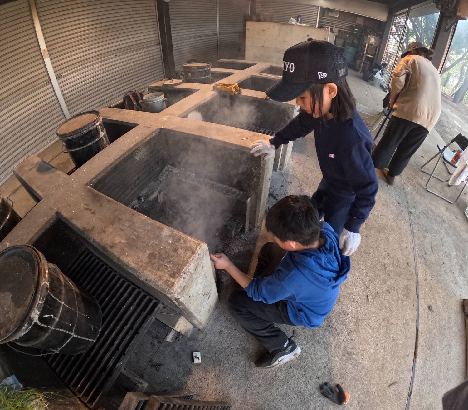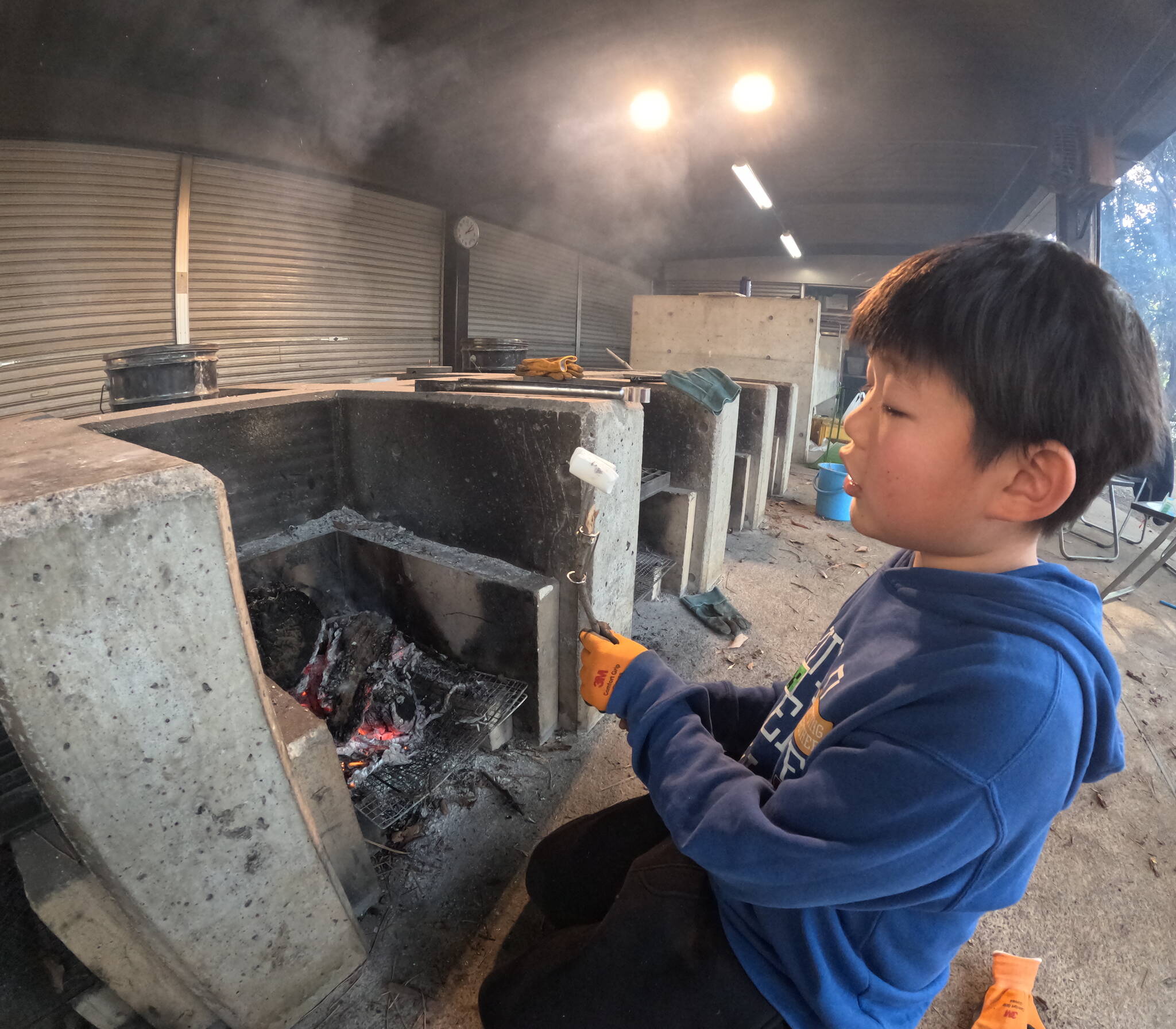 昼食が終わるころには、焚火も鎮火していたので午後は火おこしからスタート。