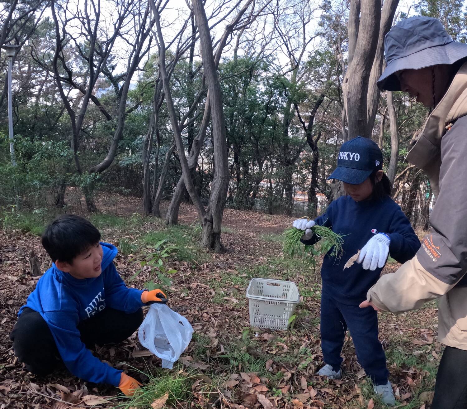 籠を片手に枝拾いと思いきや入っているのは、大量のノビル(笑)