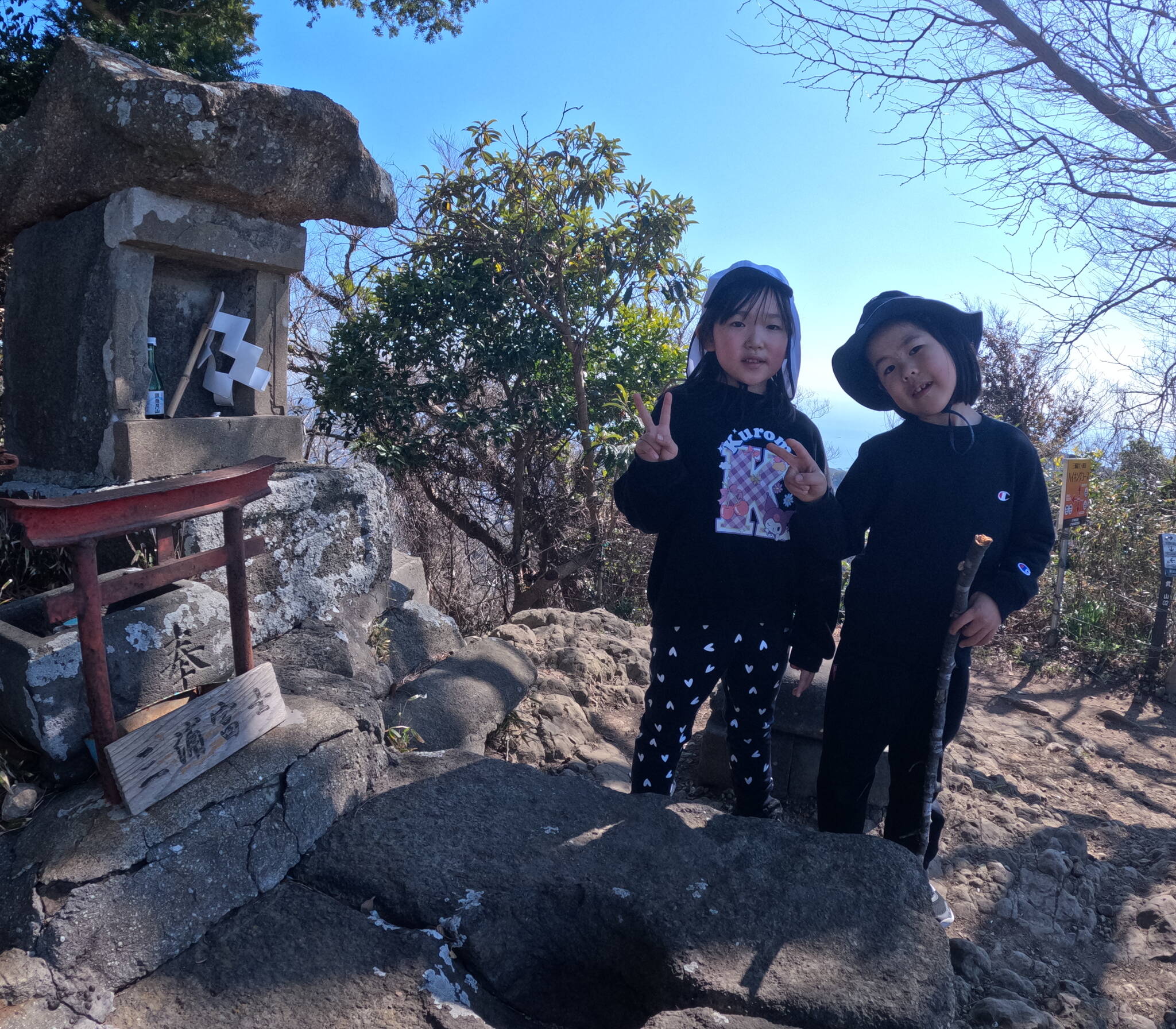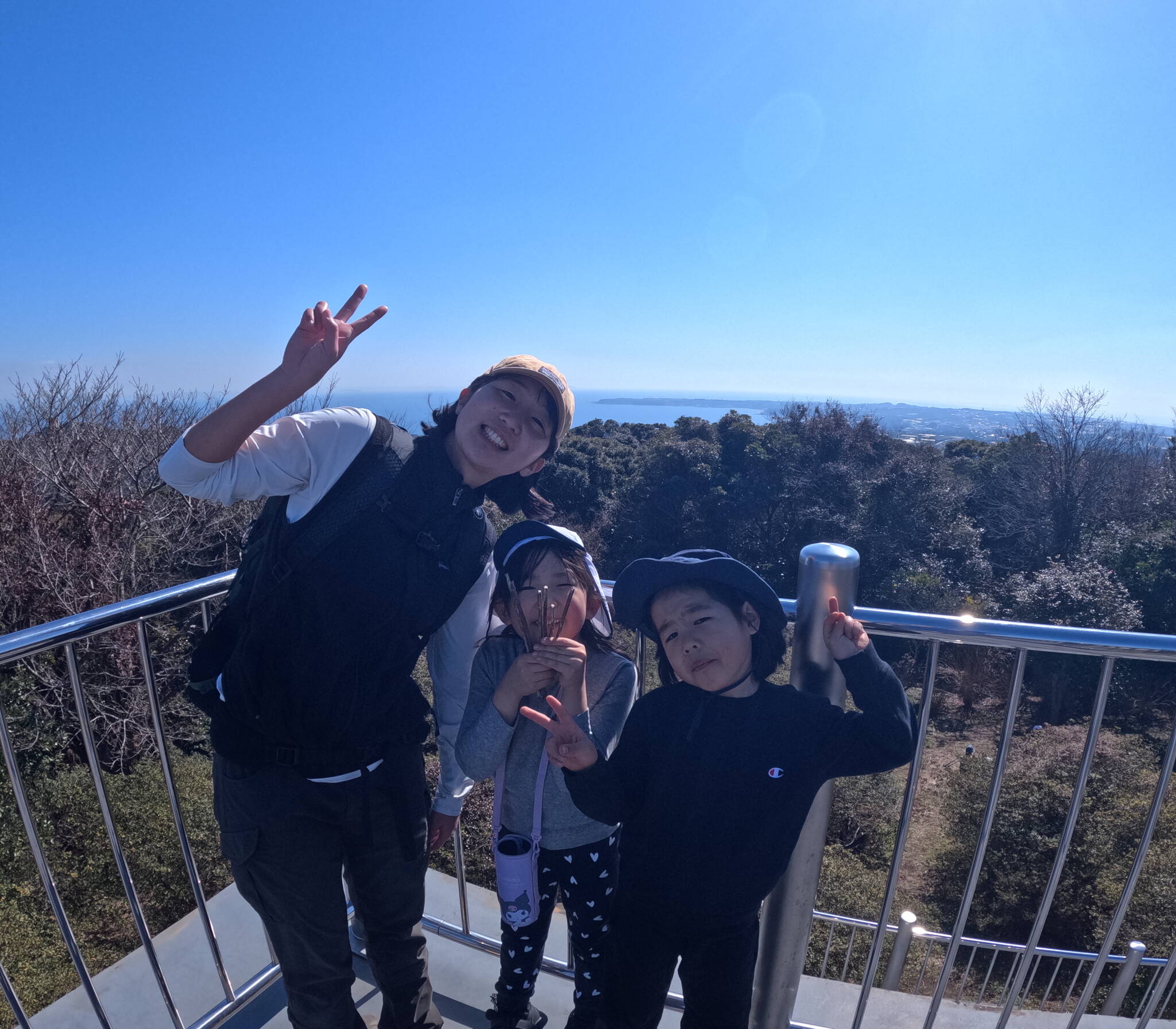 無事に山頂に到着!景色もよく、海も見えるし、対岸には千葉県が見えました☺
