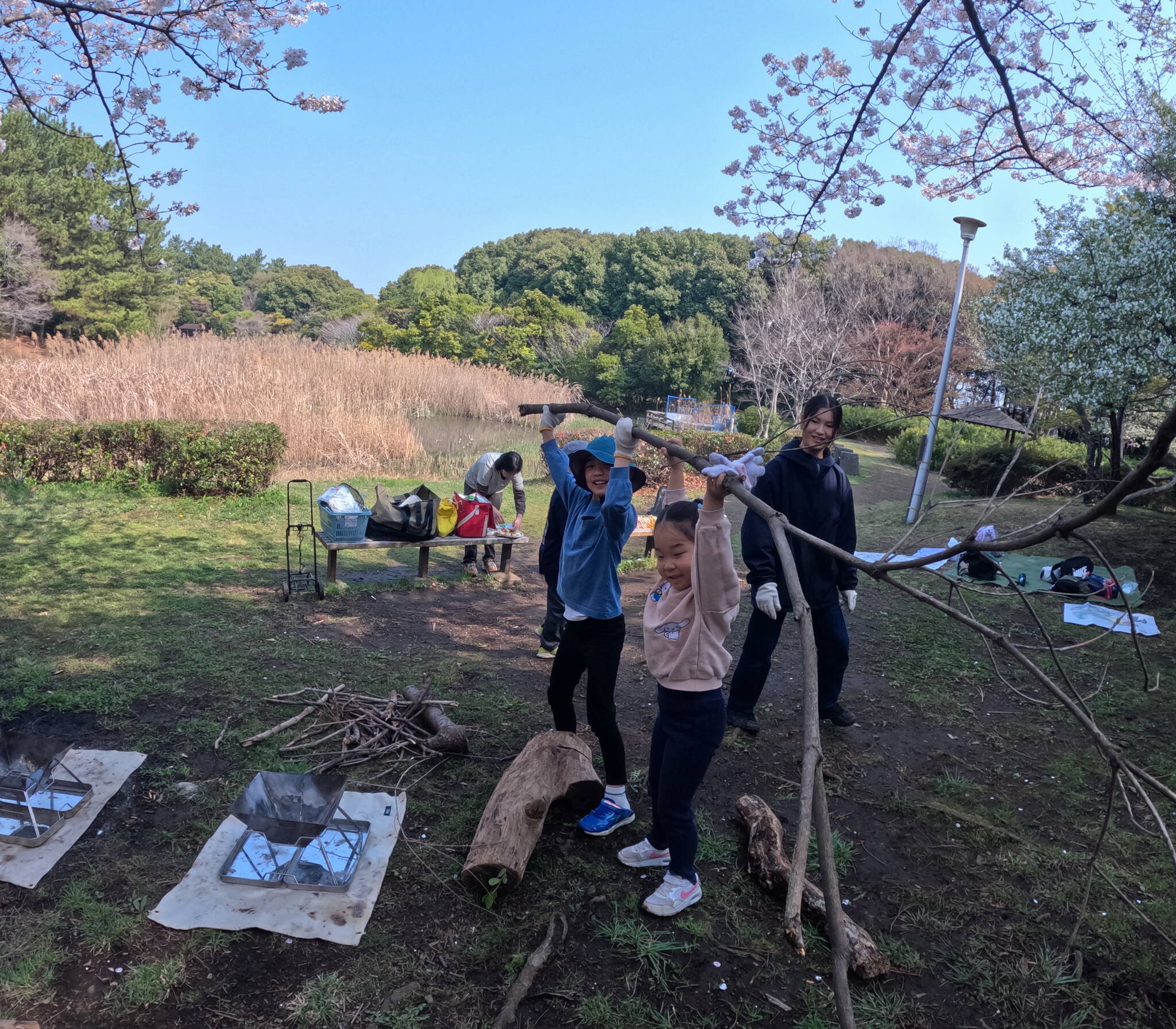 まずは今日できる事やお約束を確認したら、さっそく焚火用の枝集め!