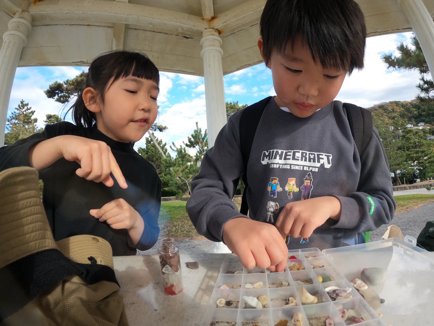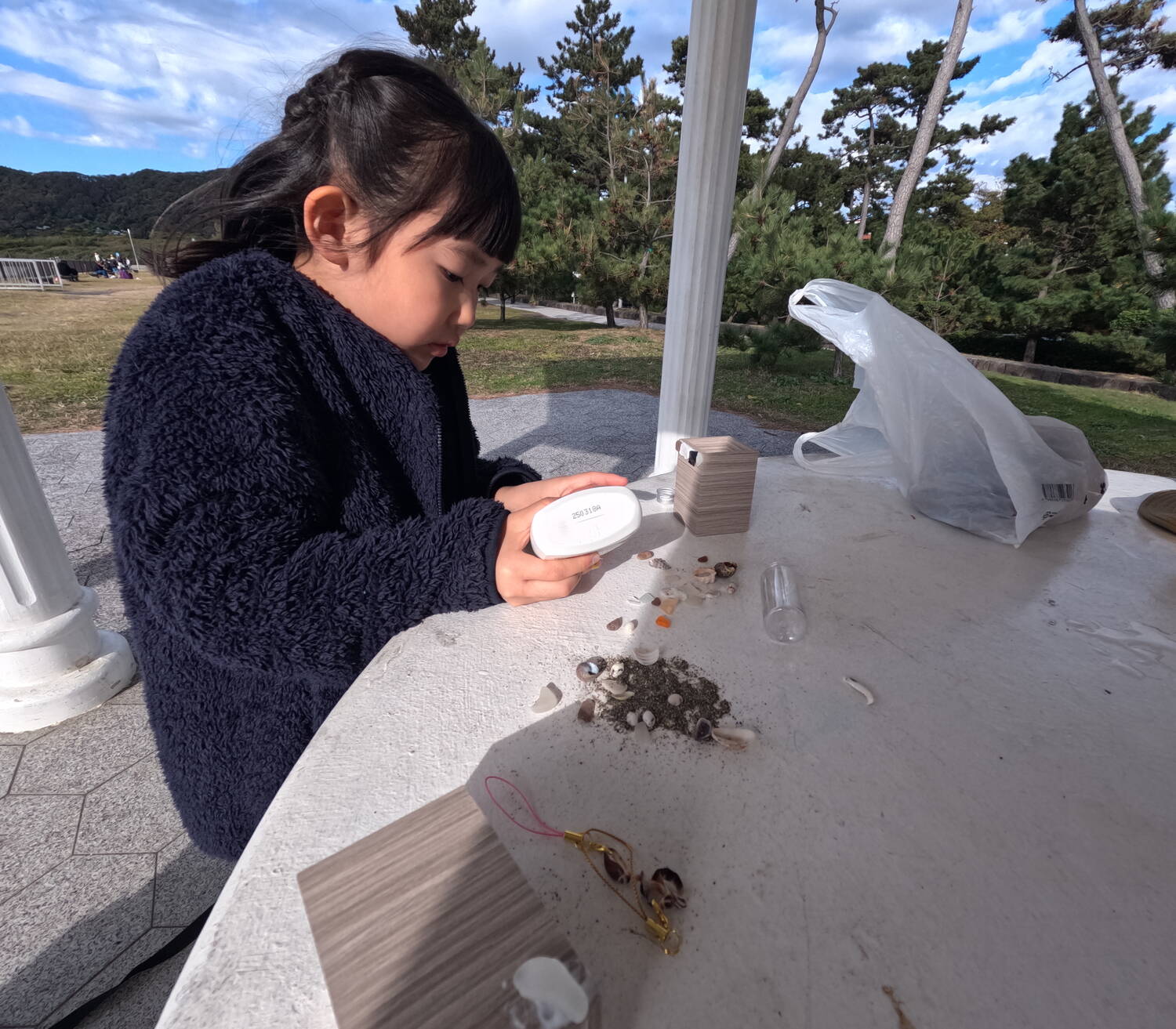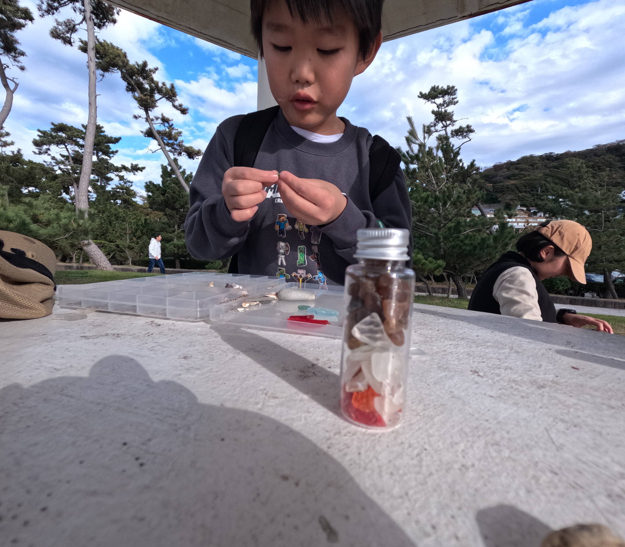 貝やシーグラスなどを見つけては、たくさん見せに来てくれます。