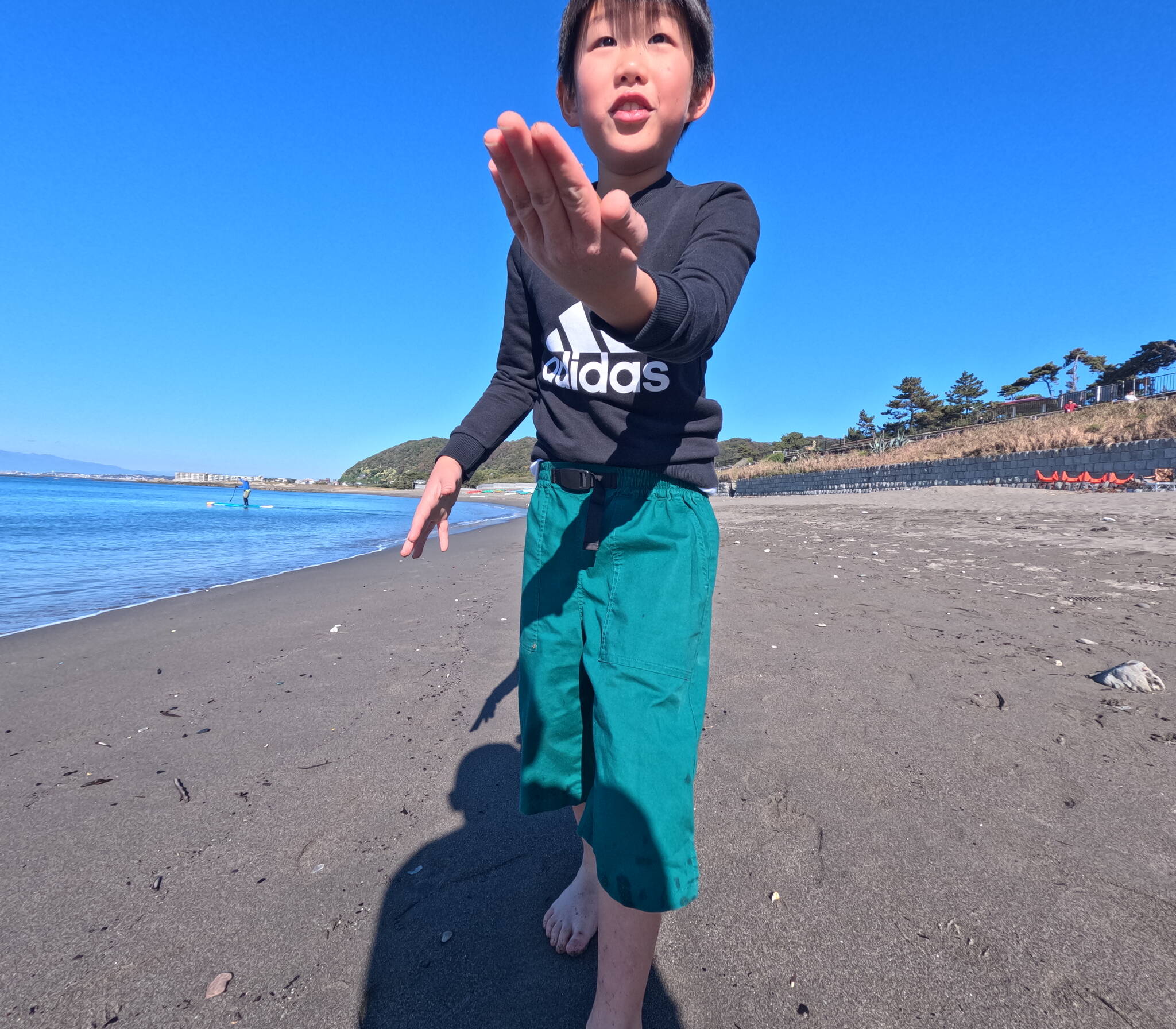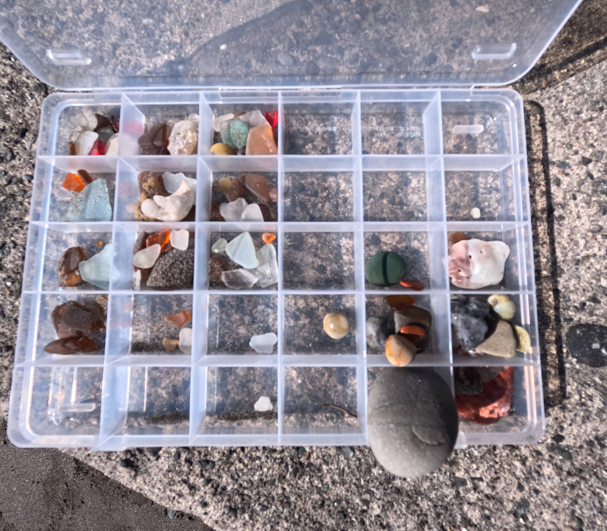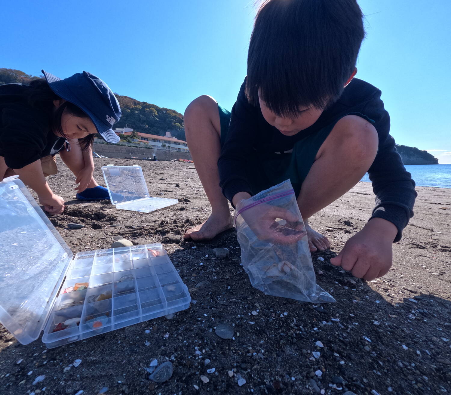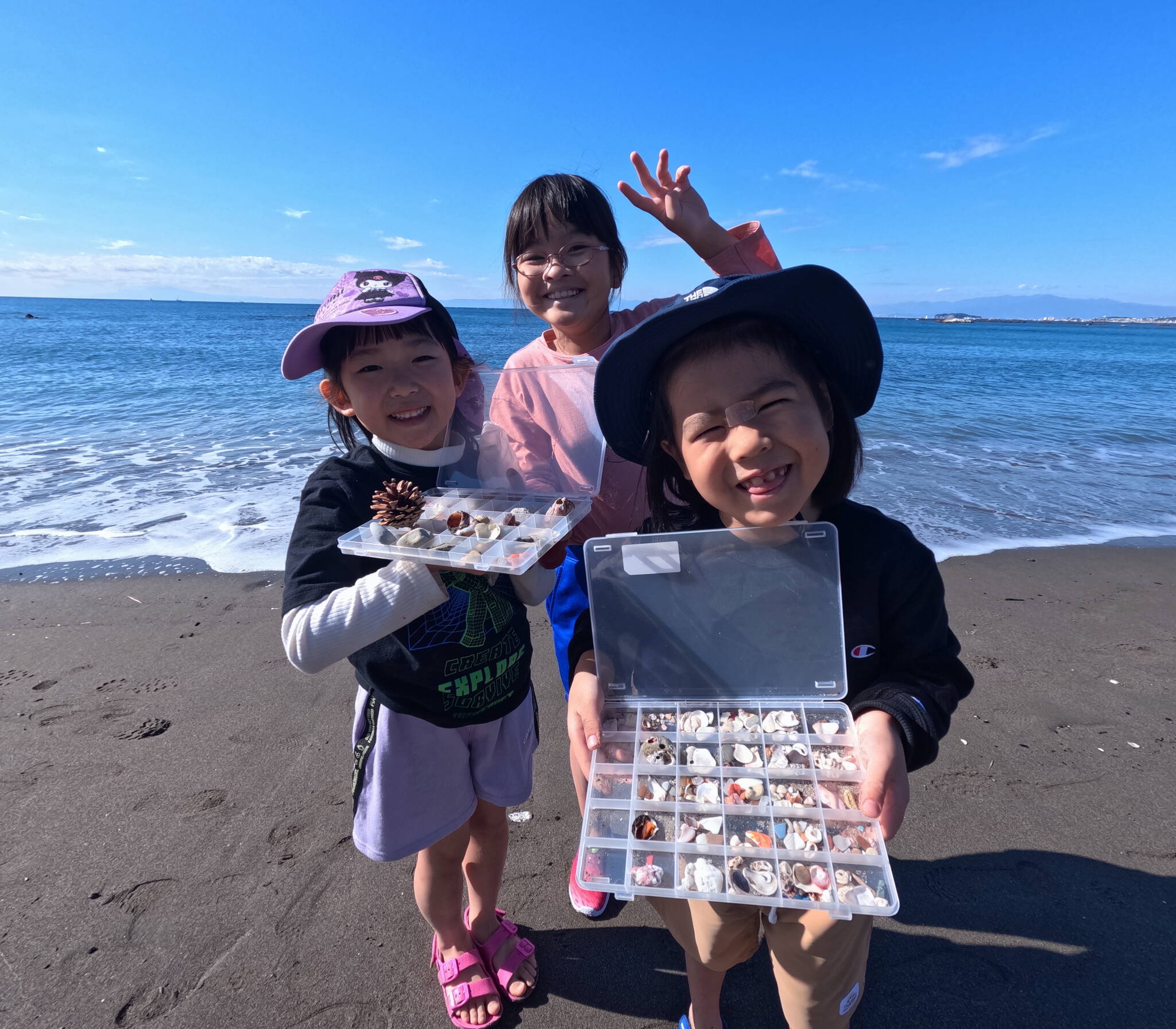貝やシーグラスなどを見つけては、たくさん見せに来てくれます。