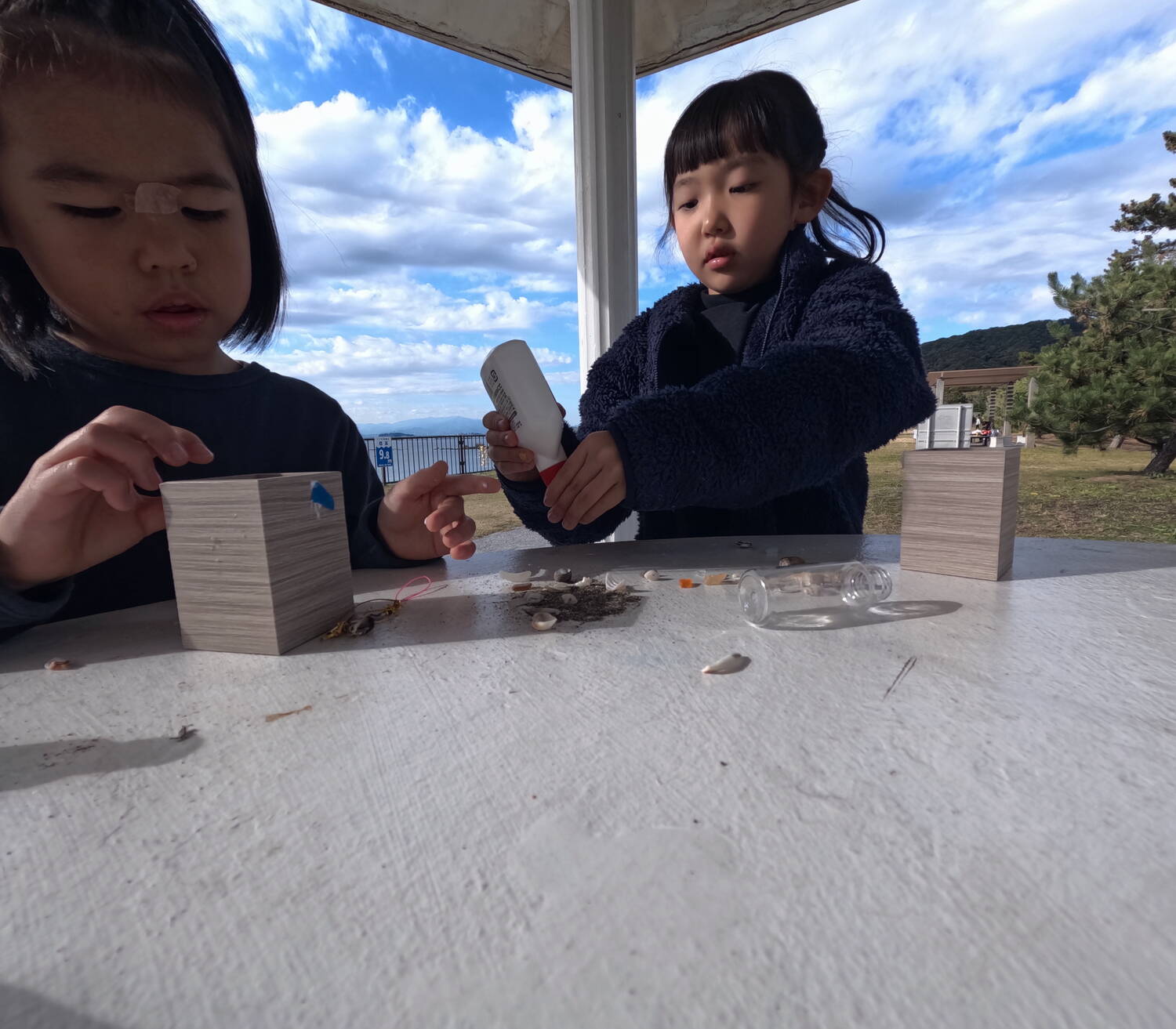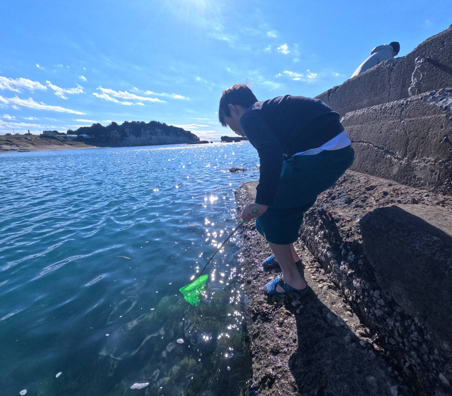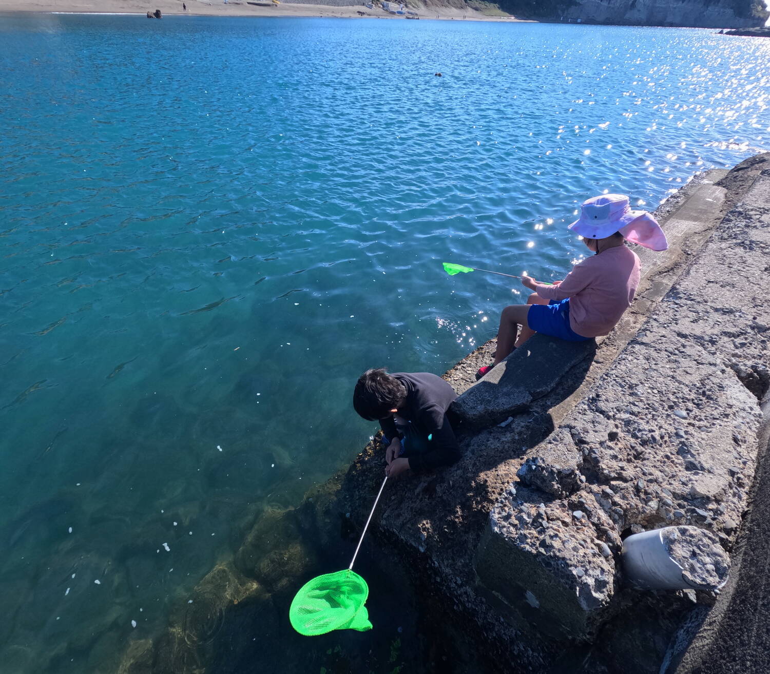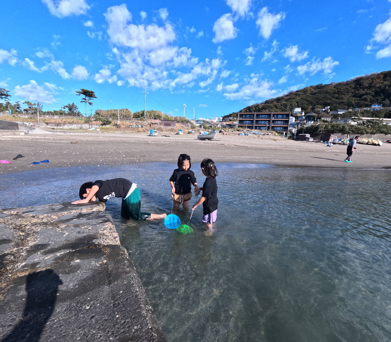 午後は網を片手に生き物を探したり、クラフトをしたり、引き続き貝殻などを拾ったり。