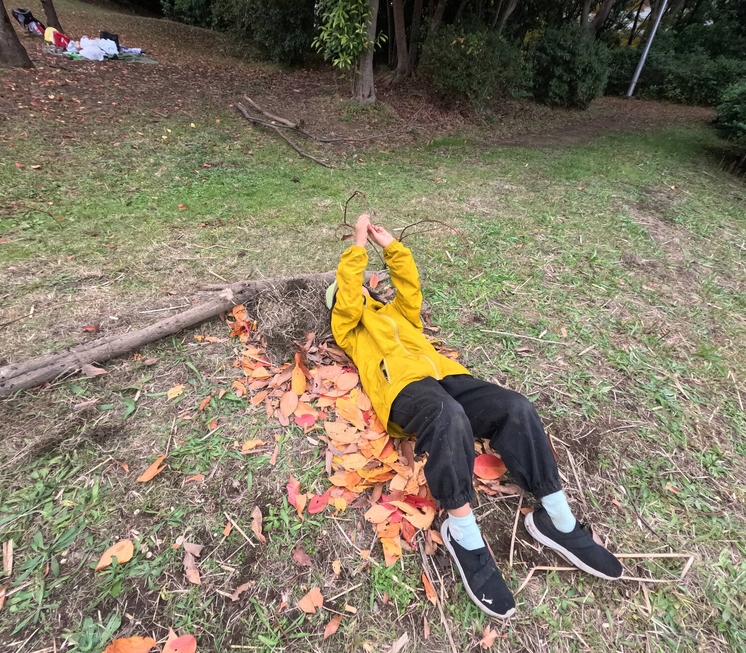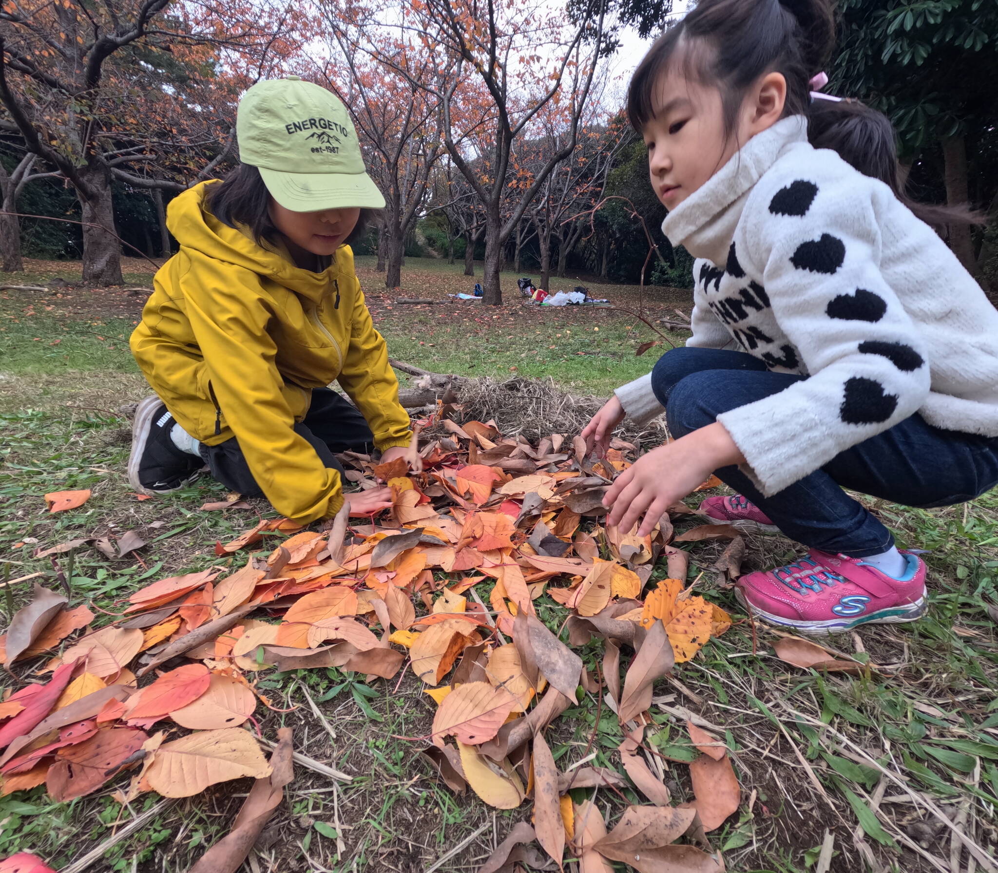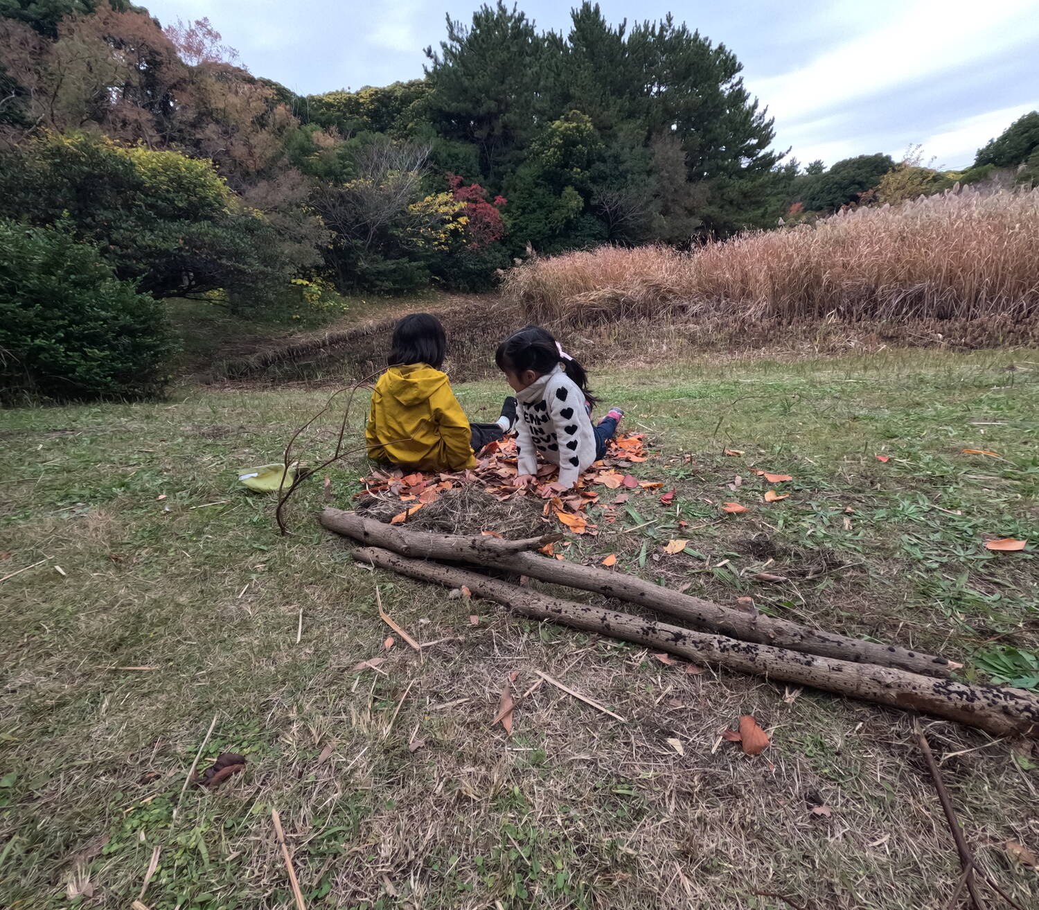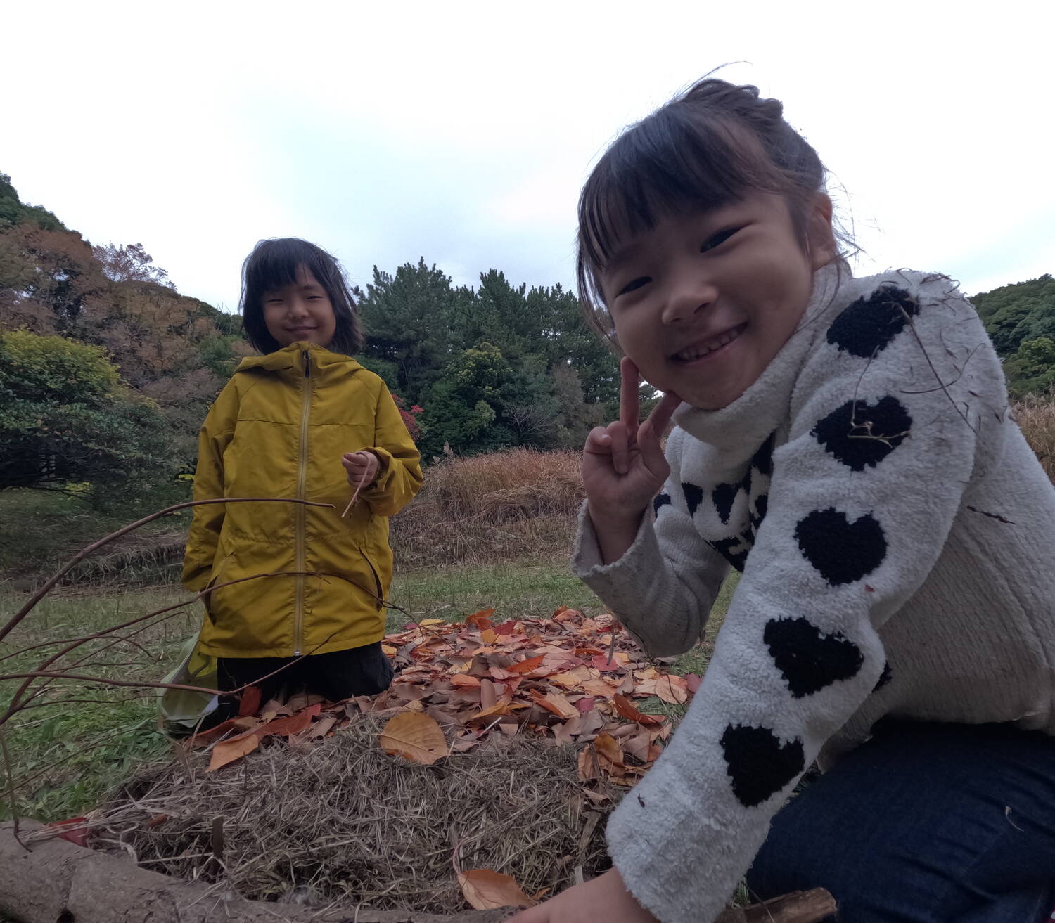 綺麗な落ち葉を使って、ベットを作る女子チームも。