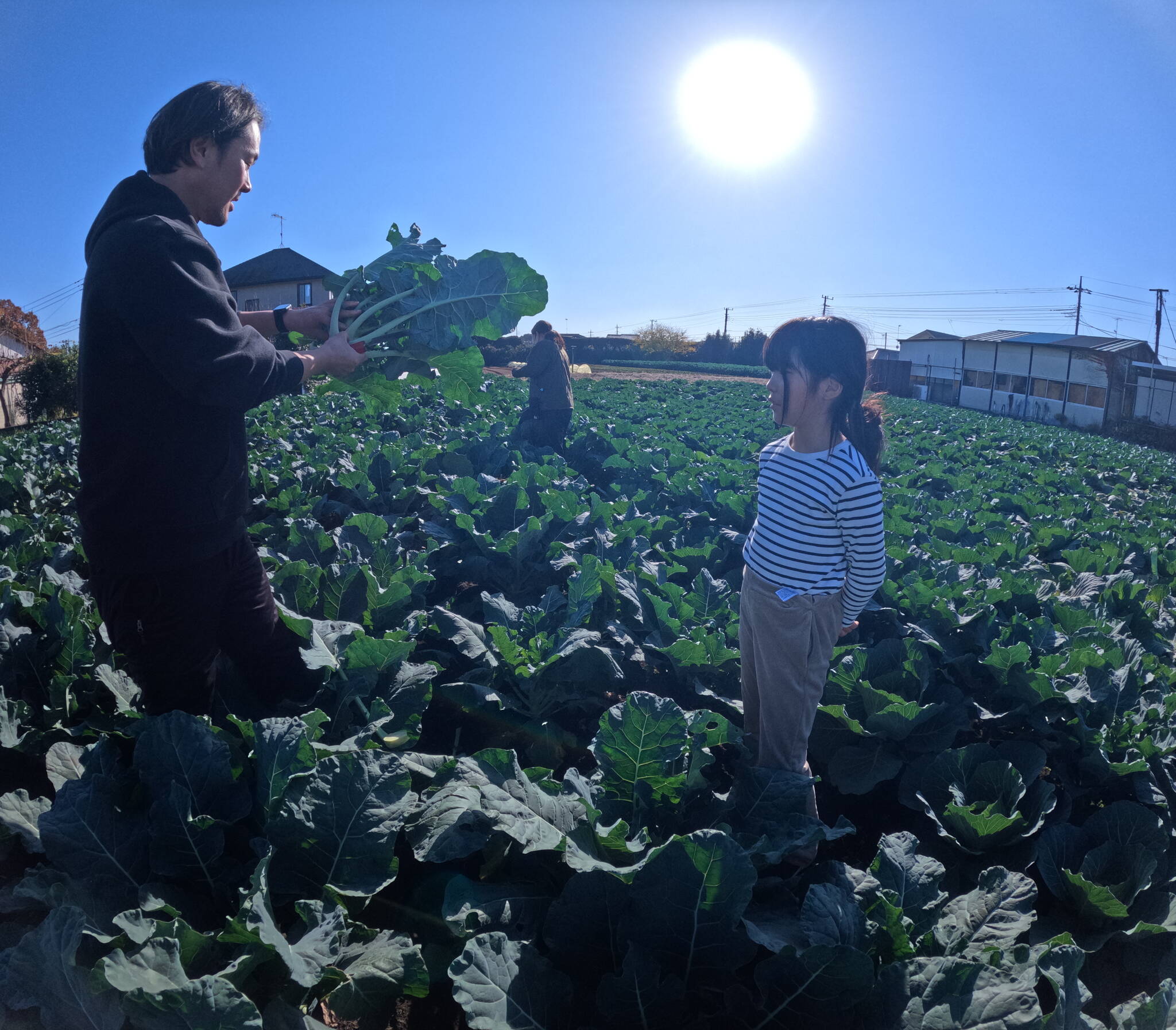 自分のお気に入りのサイズの野菜を農家さんが包丁で収穫をしてくれます。