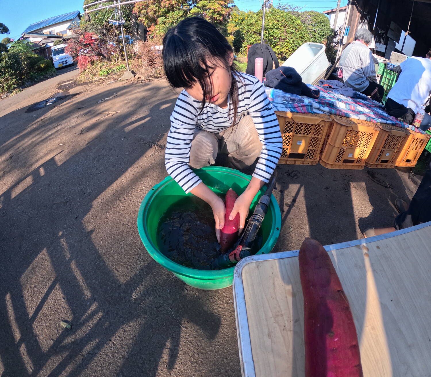 作業場に戻ったら、さつまいもを自分たちで洗っていきます。