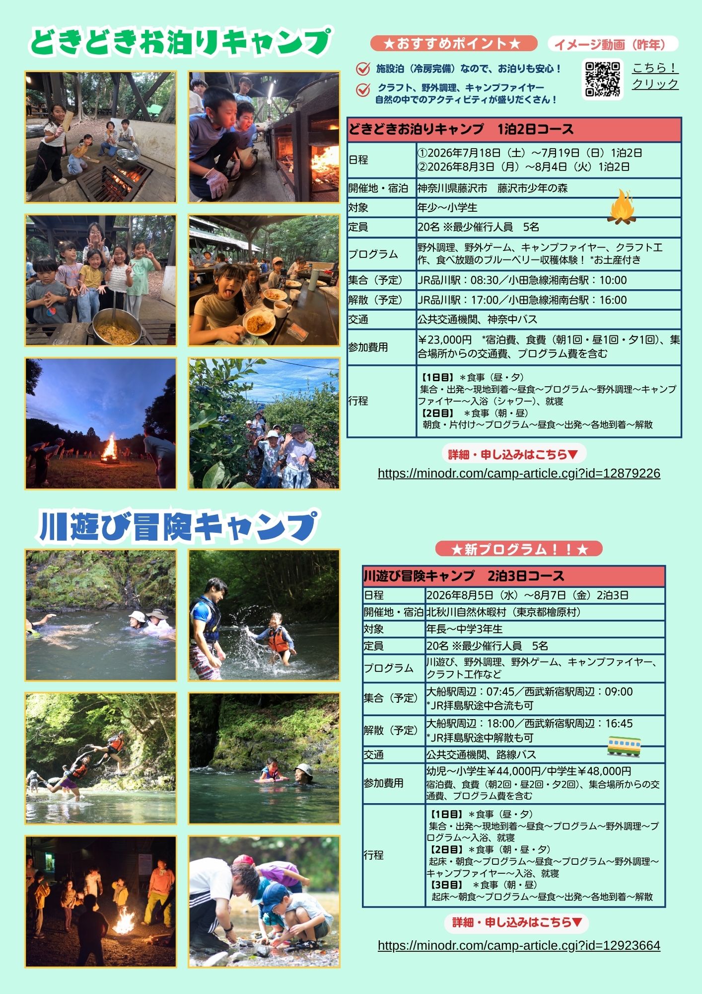 サマーキャンプの受付を開始しました!!! 一年で一番長いお休み、夏休みがやってきた!!🌊せっかくの夏休み、海や川に友達やリーダーと遊びにいこう♪どのキャンプに行きましょう!?☺さぁ、最高の夏休みを!!サマーキャンプ2026プログラム ⇦こちらをクリックしてご覧ください。